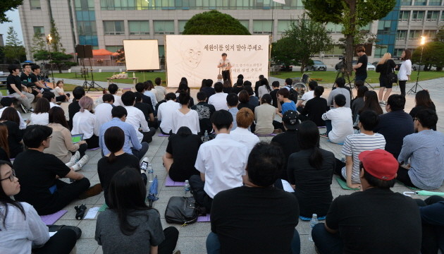 추모식은 캠퍼스 내 한 공원에서 열렸다. 50여명은 자리를 잡고 간이 무대 옆 조그맣게 설치된 스크린을 흐르는 추모영상을 봤다. 영상 속 누군가가 묻는다. '필요한 사람이 됐다고 생각하나?' 박 상경은 환하게 웃었다.