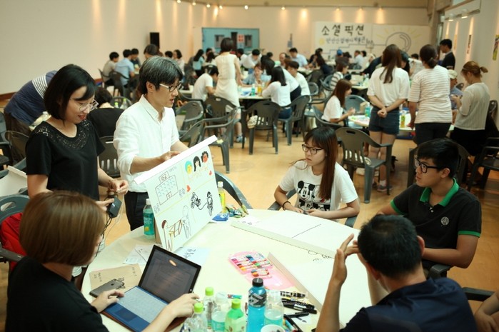 경기 안산시가 최근 안산문화예술의전당 제1전시실에서 시민·산업인·학생·교사·전문가 등 100여명이 참여한 가운데 '우리가 꿈꾸는 안산산업역사박물관'을 주제로 소셜픽션@안산산업역사박물관을 개최했다. 사진은 참여자들이 이상적인 박물관을 함께 만들기 위한 소통을 하고 있는 모습.(사진제공=안산시청)