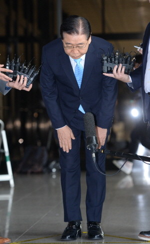 정준양 전 포스코 그룹 회장이 검찰의 포스코 그룹 비리 수사 착수 6개월만인 3일 오전 서울 서초구 반포대로 서울중앙지방검찰청에서 피의자 신분으로 조사를 받기 위해 출석하며 허리숙여 사과하고 있다.