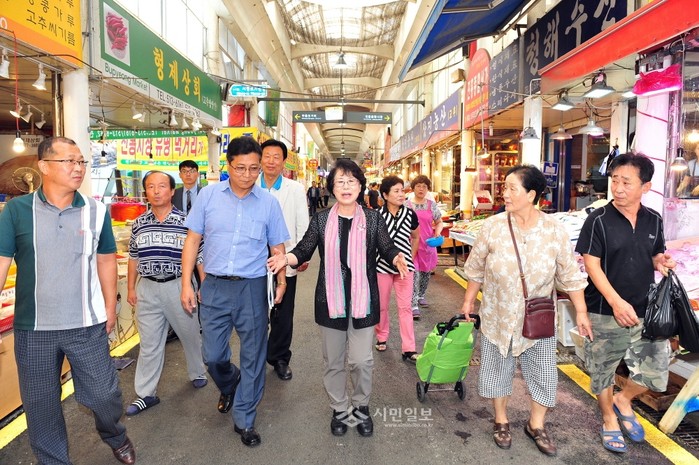 홍미영 부평구청장, 환경정비 끝낸 전통시장 방문