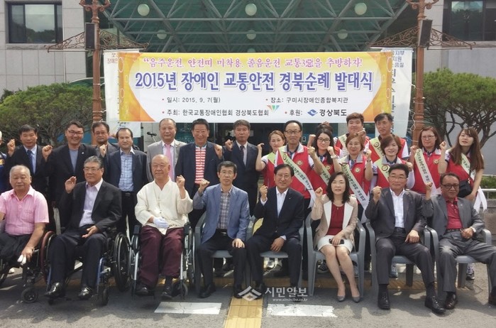 지난 7일 경북 구미시장애인종합복지관에서 도내 시·군 교통장애인과 관계자 등 200여명이 참석한 가운데 (사)한국교통장애인협회경북협회 주관으로 '2015년 장애인 교통안전 경북순례 캠페인 발대식'을 개최하고 있다.(사진제공=구미시청)