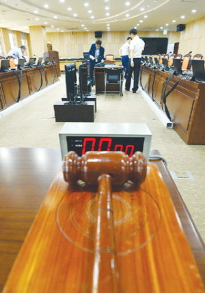 국정감사를 하루 앞둔 9일 오후 정부세종청사 보건복지부 직원들이 국정감사장을 준비하고 있다.