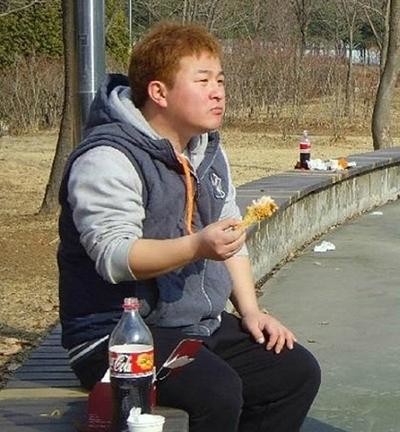 | ▲ '공원에서 치킨을 먹고있는 허각/ 사진=온라인 커뮤니티 캡처 | ||