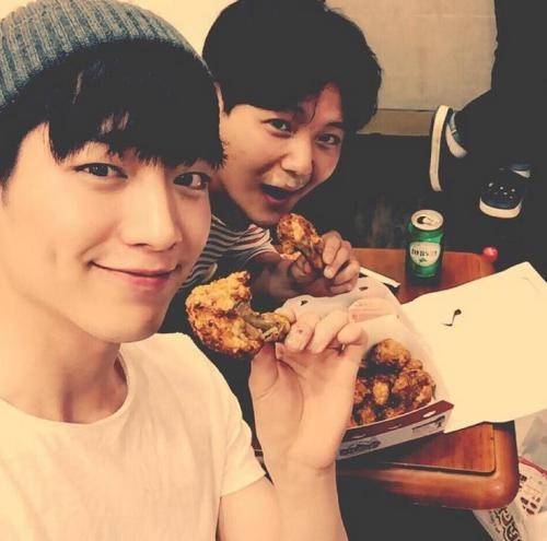 공개된 사진 속에는 서강준과 윤혜준이 MBC 월화드라마 ′화정′ 촬영 대기 중 치킨을 먹고 있다. 두 사람은 치킨을 손에 들고 흐뭇한 미소를 띄고 있어 눈길을 끈다.