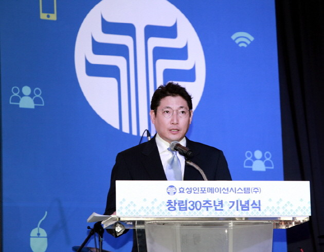 | ▲ 지난 25일 서울 서초구 세빛섬에서 열린 효성인포메이션시스템 창립 30주년 기념식에 참석한 조현준 효성 정보통신PG장(사장)이 HIS 미래비전 설명을 하고 있다 | ||