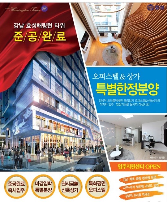 '효성 해링턴 타워` 오피스텔이 잔여가구를 강남 최초로 30% 파격적인 할인분양을 실시한다.