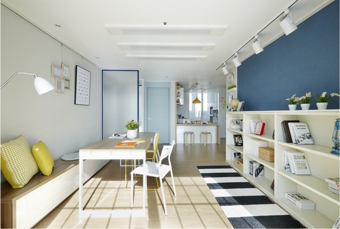 캐주얼 블루(Casual Blue)와 모노화이트(Mono White)는 56㎡~84㎡의 중소형 평형에 어울리는 스타일로 구성됐다. 캐주얼 블루는 흰색을 주조색으로 하고, 부엌, 벽지, 파티션(현관과 거실 공간분리 벽체, Partition)을 파랑색으로 강조해 전체적으로 시원하고 깔끔한 느낌이다. 모노화이트는 전체적으로는 흰색을 기본으로 하고 창호와 조명에 검은색과 회색으로 포인트를 줘 세련된 공간을 연출한다. 오리엔탈브라운(Oriental Brown)은 126㎡ 이상의 중대형 공간에 어울리는 스타일로 흙을 대표하는 색인 브라운(갈색, Brown)색과 나무와 자연을 대표하는 카키(Khaki, 황갈색)색을 조합해 차분하고 고급스러운 공간을 연출한다.
