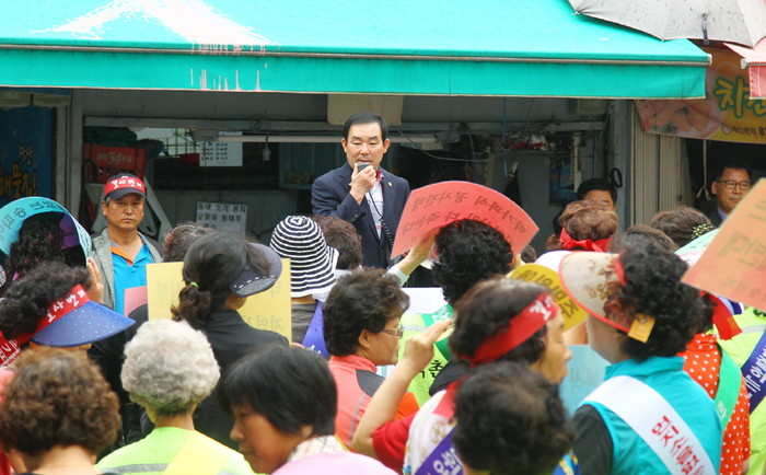 [시민일보=이대우 기자]최근 임춘대 서울 송파구의회 의장은 가락동 가락시영아파트 재건축과 관련해 석촌시장에서 열린 항의집회 현장을 방문해 주민들의 의견을 청취했다.