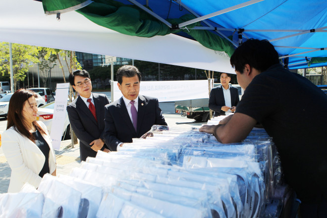 [시민일보=이대우 기자]서울시 강동구의회 성임제 의장(가운데)은 최근 강동구 상일동에 위치한 한국종합기술원 앞 광장에서 열린 ‘재한 몽골학교 돕기 현대백화점 자선바자회’에 동참했다.