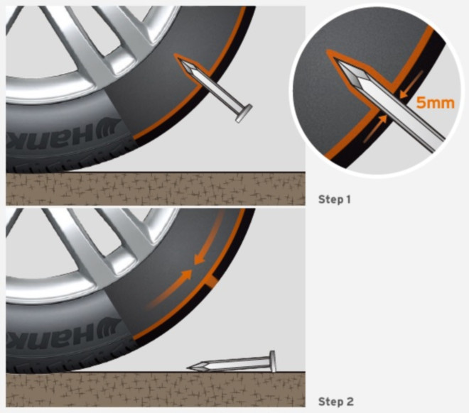 한국타이어의 실가드 타이어는 외부 충격으로 인해 펑크가 발생하더라도 내부에 도포된 점성이 있는 특수 봉합제인 실란트(Sealant) 물질이 즉각적으로 균열을 메워 내부 공기가 밖으로 유출되지 않아, 지름 5mm까지는 즉각적으로 봉합할 수 있어 펑크 상황에서도 지속적인 주행이 가능하다.