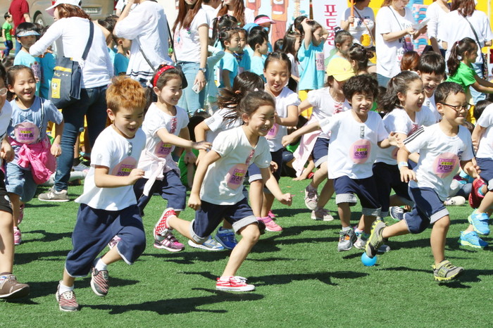 최근 서울 강북구민운동장에서 민간어린이집연합회 주최로 열린 '민속놀이 한마당' 달리기 대회에 참가한 어린아이들이 해맑은 미소로 잔디밭을 달리고 있다.(사진제공=강북구청)