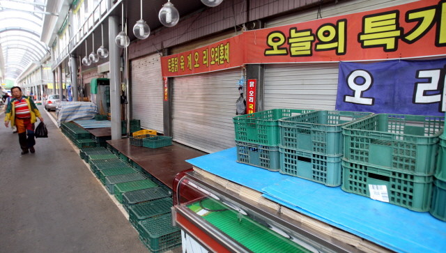 추석 연휴를 닷새 앞둔 21일 오후 조류인플루엔자(AI) 바이스러스가 검출된 광주 북구 모 전통시장의 생닭·오리 판매점이 영업을 중단하고 있다. 해당 시장의 판매점 7곳에 대해서는 다음 달 3일까지 판매 금지 조치가 내려졌으며 가금류, 관련 종사자, 출입차량 등도 이동이 제한되고 있다.