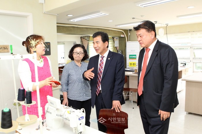 지난 22일 서울 강동구 고덕동에 위치한 서울시 동부기술교육원을 방문한 성임제 강동구의회 의장이 교육장의 실습현장을 둘러보며 직원과 이야기를 나누고 있다.(사진제공=강동구의회)