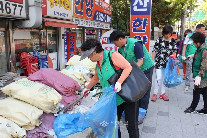 경기 용인시 기흥구 시민단체와 공무원들이 지난 22일 청결하고 쾌적한 추석 명절나기를 위한 지역내 대청소에 발벗고 나서 참여자들이 도로변에 버려진 쓰레기를 줍고 있다.(사진제공=용인시청)