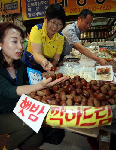 국립농산물품질관리원 전남지원 기동단속반 직원들이 지난 22일 오후 광주 서구 양동시장에서 원산지 표시 위반 여부를 확인하는 단속을 벌이고 있다.