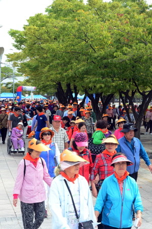 지난 23일 서울 마포구 월드컵공원내 평화공원 유니세프광장에서 열린 '제6회 마포 치매극복 걷기대회'에서 참가자들이 힘차게 출발하고 있다./뉴시스