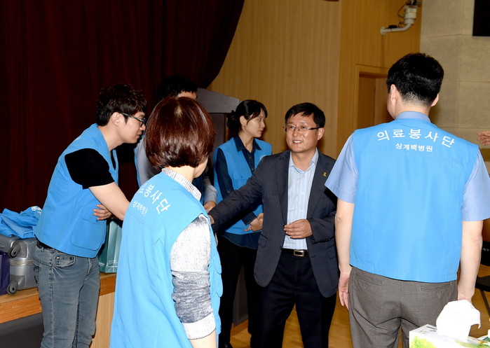 김성환 노원구청장, '2015 든든한 이웃 기업봉사단 의료기관 엽합 봉사활동' 행사장 방문