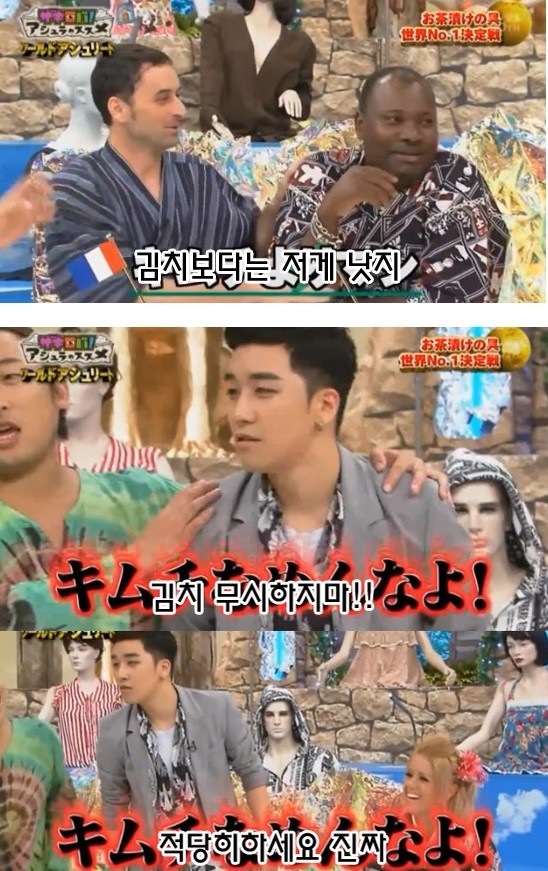 이를 듣고 있던 이탈리아 국적의 외국인은 치즈를 소개하면서 "김치보다는 저게 낫지"라고 말했다. 승리는 이에 발끈하며 "김치 무시하지마라,적당히 해"라고 언성을 높였다.