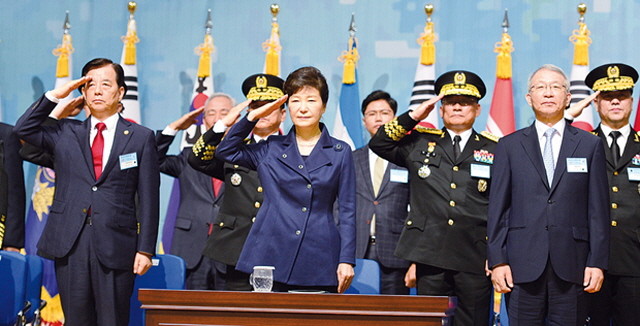 박근혜 대통령이 1일 오전 충남 계룡대에서 열린 건군 67주년 국군의날 기념식에 참석, 경레를 받고 있다.