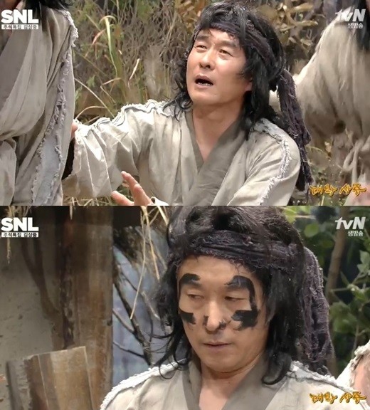 김상중은 지난달 26일 방송된 케이블채널 tvN 예능프로그램 'SNL코리아6'에 호스트로 출연, 거지로 분장해 '대왕 상중' 코너에서 코믹 연기를 펼쳤다.