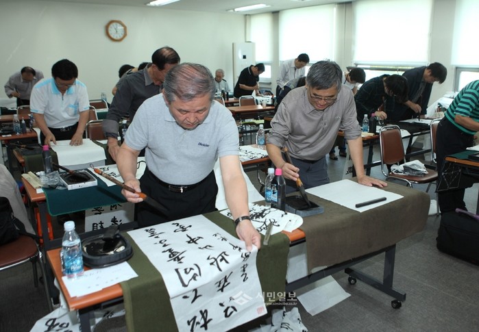 영등포구는 최근 영등포문화원에서 '영등포 구민 휘호대회'를 개최한 가운데 참여자들이 그동안 갈고 닦은 솜씨를 발휘해 붓글씨를 쓰고 있다.(사진제공=영등포구청)