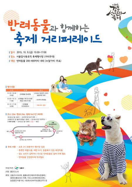 구 관계자는 “많은 주민들이 방문하는 축제 기간 동안 동물복지 선도구 강동구의 이미지를 더욱 높이고, 반려동물에 대한 이해를 돕기 위해 행사를 준비하게 됐다”며 “축제장을 찾는 관람객들에게 색다른 즐거움을 선사할 것으로 기대한다”고 밝혔다.