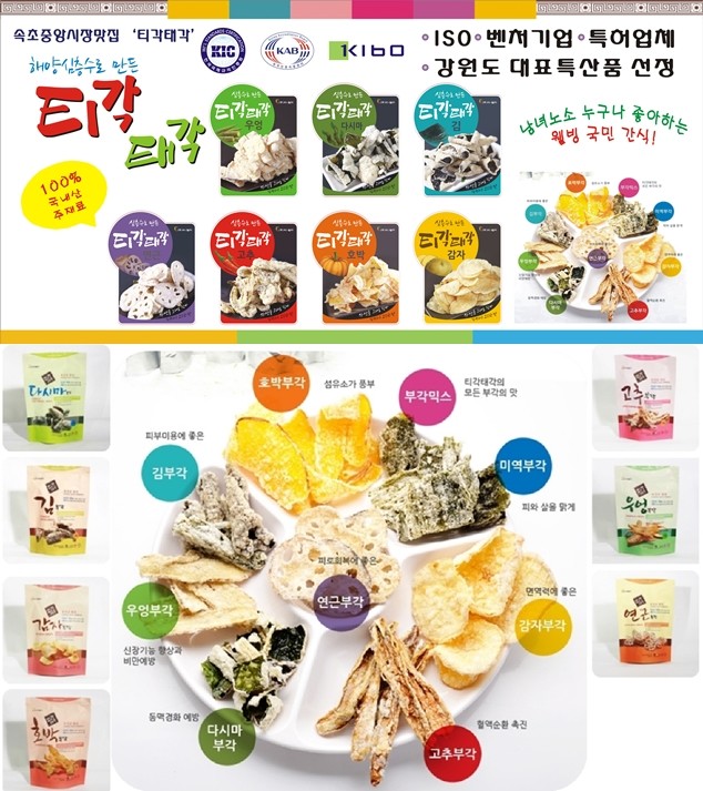 각종 매스컴에 소개되면서 소비시장이 전국적으로 빠르게 확산되고 있는 속초명물 ‘부각’이 ‘티각태각’ 이란 브랜드 런칭을 통해 소자본창업아이템으로 주목을 받고 있다.‘부각’은 옛날 사찰에서 먹던 전통 먹거리 였다고 한다. ‘부각’이 생소하게 들릴지 도 모르겠지만 ‘티각태각’이란 브랜드로 재탄생하며 웰빙 국민간식으로 매출이 해마다 100% 이상 급상승하고 있다.