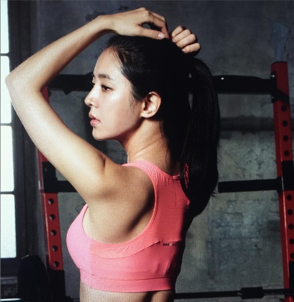 공개 된 사진 속에서 한 채아는 핑크색 운동 탱크탑을 입고 두손을 머리 위로 올려 탄탄한 팔라인을 뽐내고 있다.