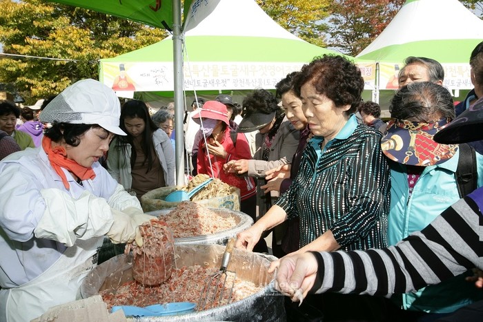 | ▲ 전국의 새우젓을 한눈에 살펴보고 구입할 수 있는 새우젓장터를 방문한 주민들이 새우젓을 구입하고 있다. | ||