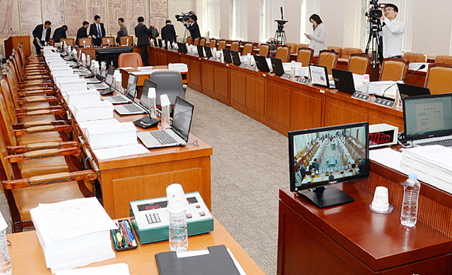새정치민주연합이 ‘국정 교과서’를 다루는 국회 교육문화체육관광위원회 예산 심사를 거부키로 함에 따라 19일 오전 서울 여의도 국회에서 열릴 예정이던 교육문화체육관광위원회 전체회의가 열리지 못하고 있다.