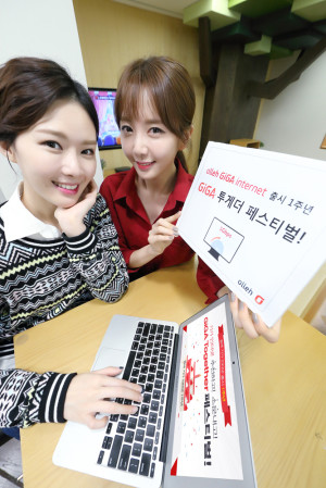 한편, KT는 ‘GiGA Together 페스티벌’을 개최한다. ▲ 지인 추천 이벤트 ▲ 퀴즈 및 SNS공유 이벤트 ▲ 체험수기 공모전으로 구성됐다. ‘지인 추천 이벤트’는 올레 기가 인터넷 가입자가 친구, 가족 등 지인에게 서비스를 직접 소개하는 행사. 다음달 20일까지 자신의 추천을 받아 가입한 고객 39명에게 맥북, 갤럭시 기어 S2, LG 올인원 TV 등 경품이 추첨으로 지급된다. 가입은 올레 매장이나 올레 플라자, 전화(고객센터 100)를 통해 가능하다.
