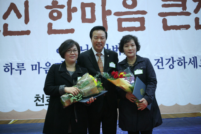 서울특별시 강동구의회(의장 성임제) 조동탁 의원(천호2동)은 최근 해공체육관에서 개최된 ‘천호3동 어르신 한마음 큰잔치’에 참석하여 어르신복지 유공자에게 표창장을 수여하고 기념촬영을 하고 있다.