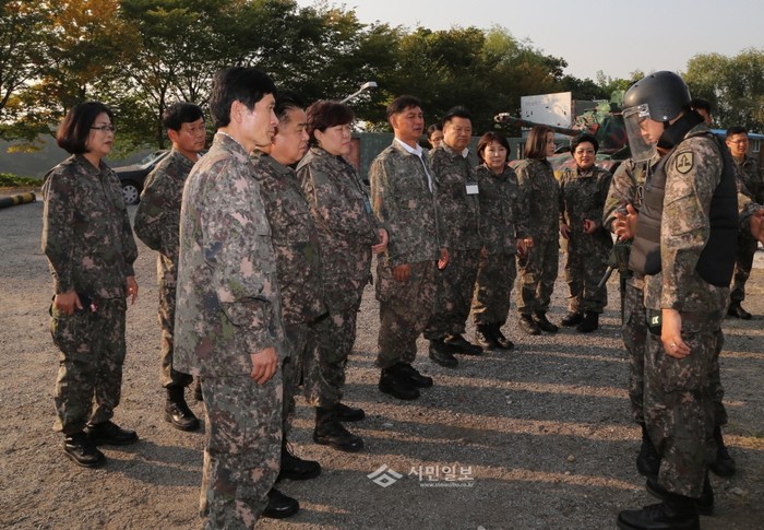서울 구로구의회 김명조 의장(앞줄 왼쪽에서 세 번째)을 포함한 의원 9명은 최근 육군 제7688부대를 방문해 일일 병영체험을 통해 안보의식을 강화하고 장병들의 노고를 격려하는 시간을 보냈다.(사진제공=구로구의회)