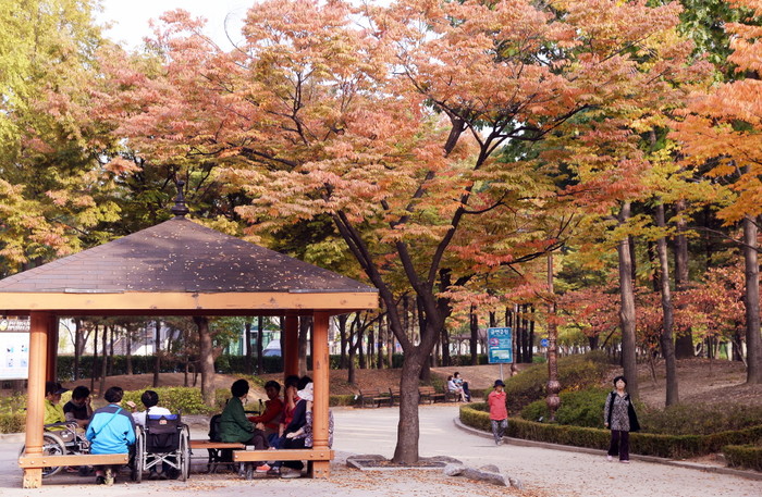전국이 가을 단풍으로 물들어 가고 있는 지난 20일 서울 강서구 가양동 구암공원에 시민들이 산책과 함께 휴식을 취하고 있다./뉴시스