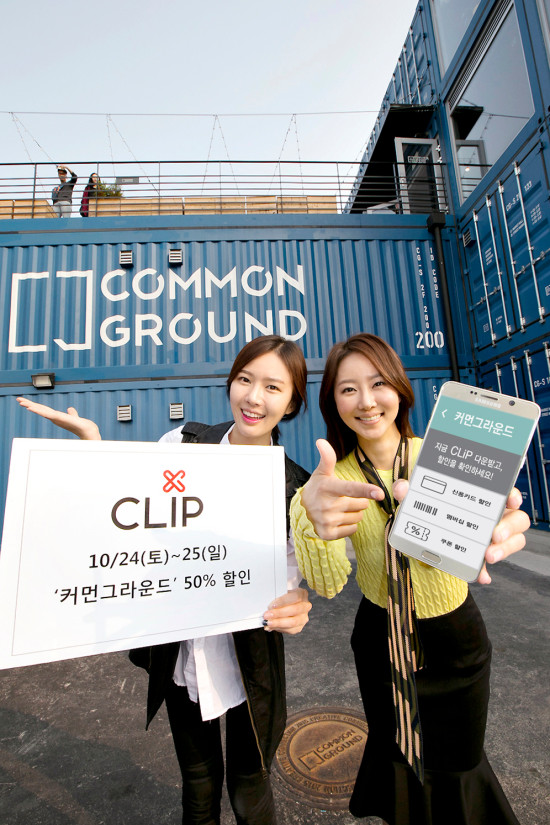 건대입구에 위치한 국내 최대 컨테이너 컴플렉스 ‘커먼그라운드’에서 24일(토), 24일(일) 양일 간 진행되는 ‘커먼그라운드를 CLiP하라’는 ‘클립(CLiP)’ 앱을 다운로드한 후, 쿠폰>브랜드 메뉴에서 ‘커먼그라운드’ 쿠폰을 발급 받으면, ‘마이쿠폰’ 메뉴에서 확인 및 사용 가능하다. 또는, 커먼그라운드에 위치한 사용자라면 클립에서 내 주변 매장의 쿠폰을 발급받을 수 있다. 발급받은 쿠폰은 커먼그라운드의 제휴 매장 이용 시 전 품목 50% 할인 혜택을 받을 수 있다.