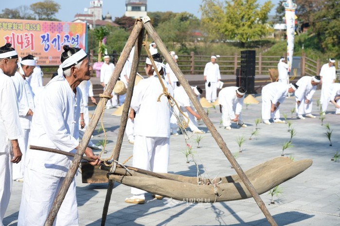 경기도 무형문화재 제35호 포천메나리가 최근 소홀읍 수목원 고모호수공원 야외공연장에서 '제4회 포천메나리 시연회'를 개최한 가운데 포천메나리 회원들이 공연을 펼치고 있다.(사진제공=포천시청)