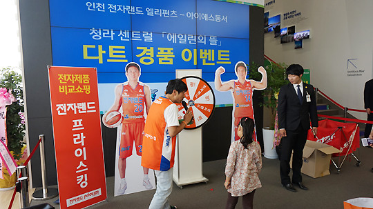 셋째 날에는 프로농구단 인천전자랜드 엘리펀츠팀이 방문했다. 인천전자랜드 엘리펀츠팀과 함께 하는 경품 이벤트가 진행돼 즐거움이 배가 되는 시간이었다.