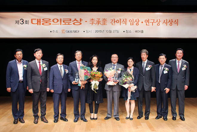 ㈜대웅재단(이사장 장봉애)은 27일 서울시 강남구 삼성동 대웅제약 별관 베어홀에서 ‘제3회 대웅의료상-李承奎(이승규) 간이식 임상·연구상’ 시상식을 개최했다고 밝혔다.
