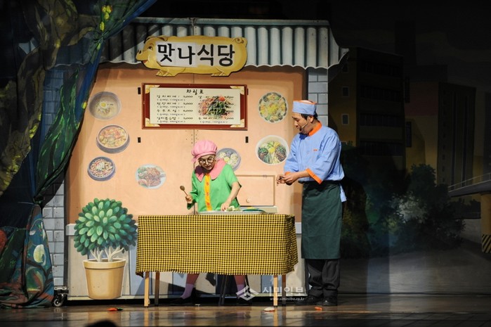 지난 28일 오전 10시30분 동대문구가 구청 강당에서 아동의 올바른 식습관 형성을 위한 영양뮤지컬 '우당탕탕 소금괴물'을 진행해 배우들이 무대에 올라 공연을 펼치고 있다.(사진제공=동대문구청)