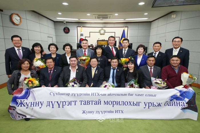 | ▲수흐바타르구의회와 종로구의원들의 기념촬영 모습(사진제공=종로구의회) | ||