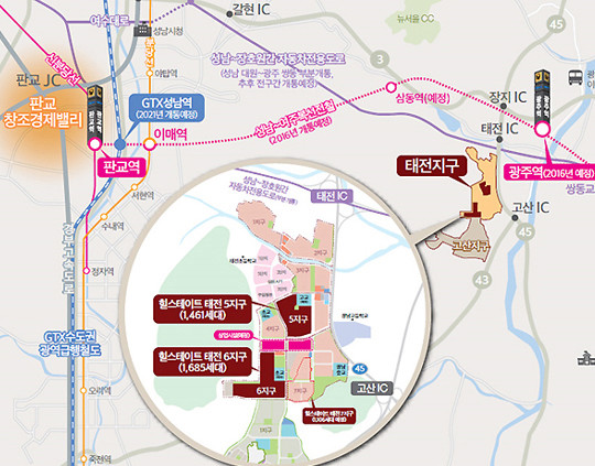 광주시 최초의 신도시인 태전지구는 고산지구와 함께 경기 광주시 태전동과 오포읍 고산리 일대 약 120만㎡ 규모로 조성되는 민간도시개발사업구역이다. 광주시 최대 규모인 태전지구는 고산지구와 함께 개발되는 신흥 주거단지로 향후 총 1만 8000여 가구가 들어서게 된다.
