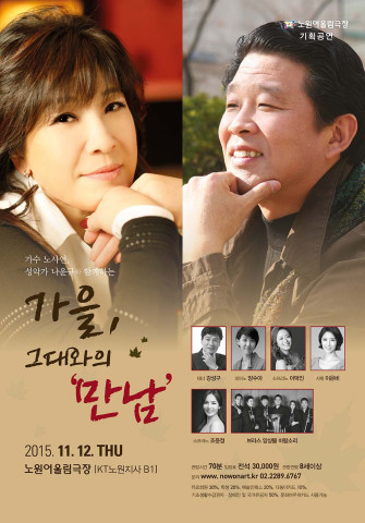 11월, 가을저녁에 관객들에게 선보이게 될 이번 공연에는 데뷔 이래 타고난 입담과 친근함으로 라디오·TV 등에서 만능엔터테인먼트로 팬들에게 꾸준한 사랑을 받고 있는 가수 노사연을 비롯하여 베이스 나윤규, 소프라노 이덕인 등 실력파 뮤지션들이 다수 출연하여 깊어가는 가을 밤 관객들을 아름다운 음악의 세계로 빠져들게 할 것이다.