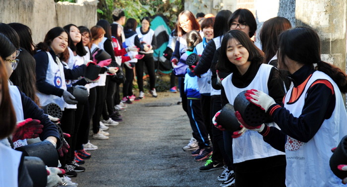 최근 광주광역시 북구 중흥동의 한 골목길에서 지역내 어려운 이웃들이 다가오는 추운 겨울을 따듯하게 지낼 수 있도록, 대한적십자사 광주·전남지사와 RCY 단원들이 사랑의 연탄을 배달하고 있다./뉴시스