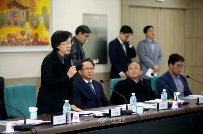 서울 강남구는 최근 구청에서 공동주택입주자대표회의, 강남문화재단과 ‘저소득 위기가정을 위한 업무협약’을 체결했다. 사진은 협약식에 참석한 신연희 강남구청장이 협약 체결에 앞서 인사말을 하고 있는 모습.(사진제공=강남구청)