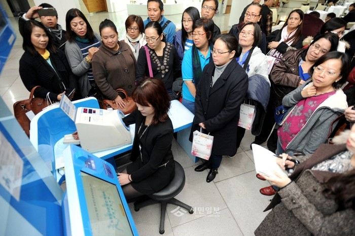 지난 3일 한국국제협력단(KOICA)의 초청으로 1주일간 우리나라의 보건관련 기관을 방문 중인 '필리핀 ICT 보건역량개발 연수단'이 송파구청 민원실에 마련된 스마트주치의 체험을 하고 있다.(사진제공=송파구청)