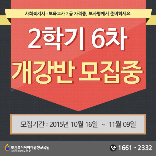 한편 사회복지사, 보육교사2급 자격증 취득에 있어 꼼꼼한 학습설계로 유명한 보건복지사이버평생교육원에 대한 정보는 공식 홈페이지(bbedu.or.kr) 또는 대표전화(1661-2332)를 통해 확인할 수 있다.