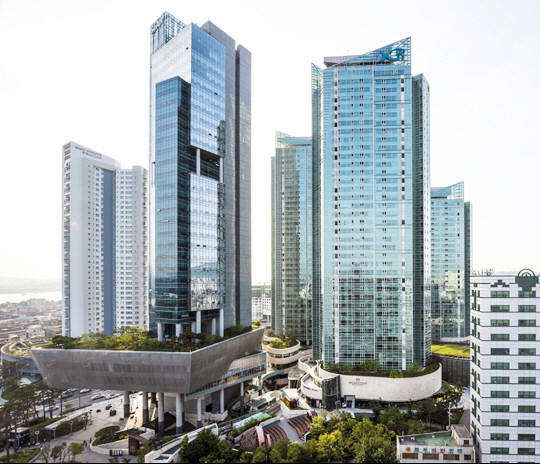 합정 메세나폴리스는 중앙광장과 분수광장, 어린이공원, 야외무대 등 공간활용을 극대화한 수직형친환경 설계공법으로 대지면적의 약 26%를 녹지로 조성해, 도심 속 자연공간을 구현했다.