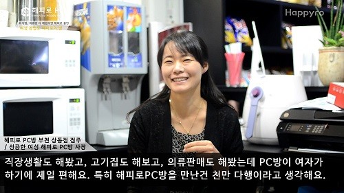 때문에 여성이 PC방 창업을 생각하기는 쉽지 않은 것이 사실이다. 그러나 이런 일반적 통념을 깨고 피씨방창업을 해 성공적으로 매출을 유지하고 있는 곳이 있다. 바로 해피로PC방의 부천 상동점 김형순 점주가 그 주인공이다. PC를 ‘빠삭하게 잘 알고 있는’남성들도 심한 경쟁률에 고전을 면치 못하고 있는 상황에서 그녀의 활약은 입지전적인 것으로 평가받고 있다.