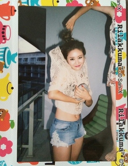 공개된 사진 속에는 핫팬츠와 망사로 된 배꼽티를 입고 카메라를 응시하고 있는 한그루의 모습이 담겨있다.