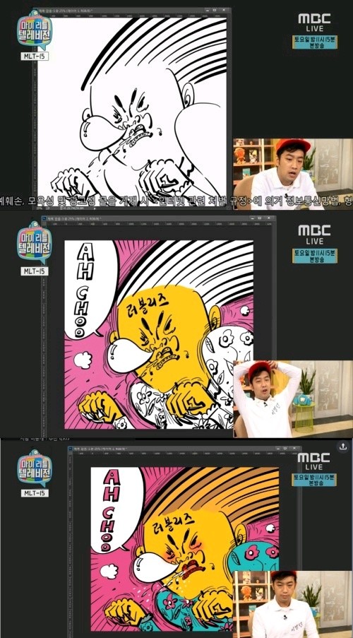이날 '마리텔' 이말년은 옆 방에서 또 다른 방송을 진행 중인 러블리즈의 '아츄' 앨범 표지를 그리기 시작했다.